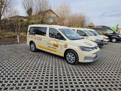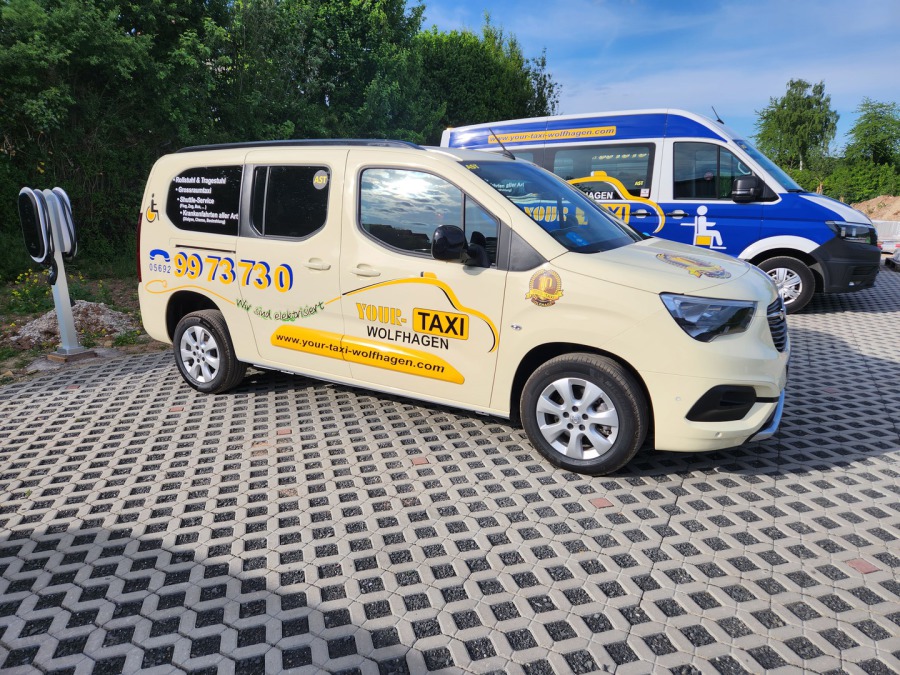 Einige unserer 6 Rollstuhlfahrzeuge - VW Caddy Maxi, Opel Combo Elektric - mit besonders großen Rollstuhlplatz auch für E-Scooter!